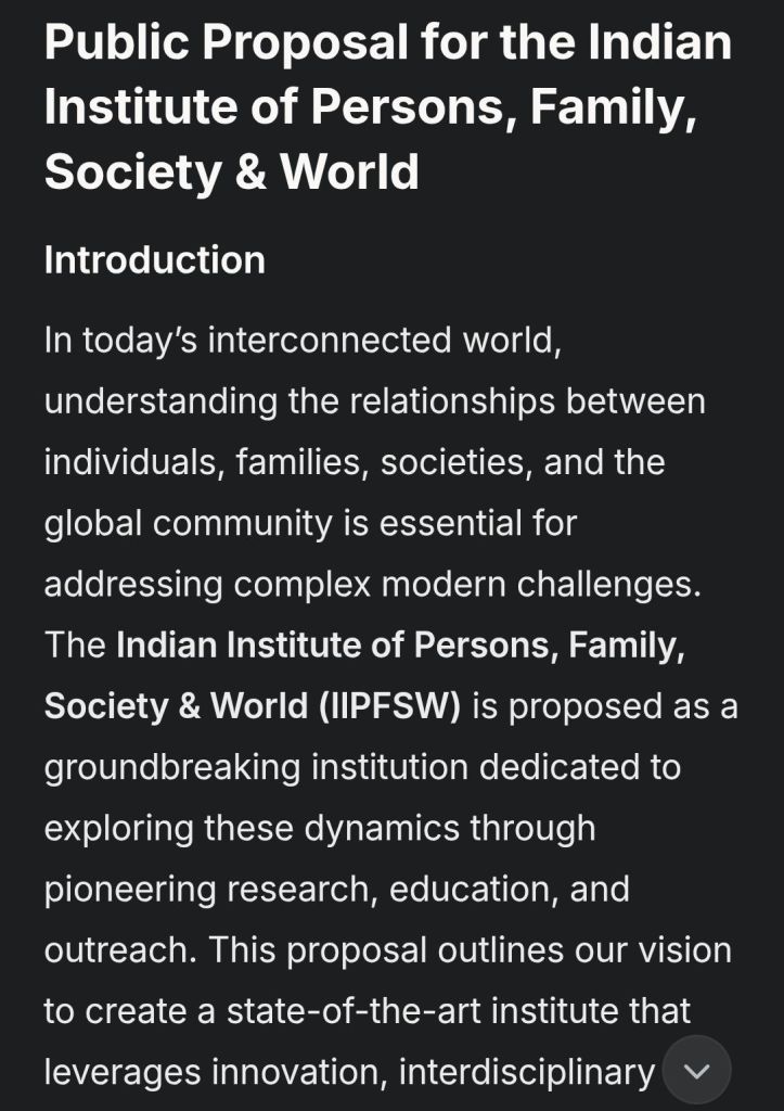 Below is a public proposal for the “Indian Institute of Persons, Family, Society & World,” designed to be innovative and state-of-the-art, as requested.