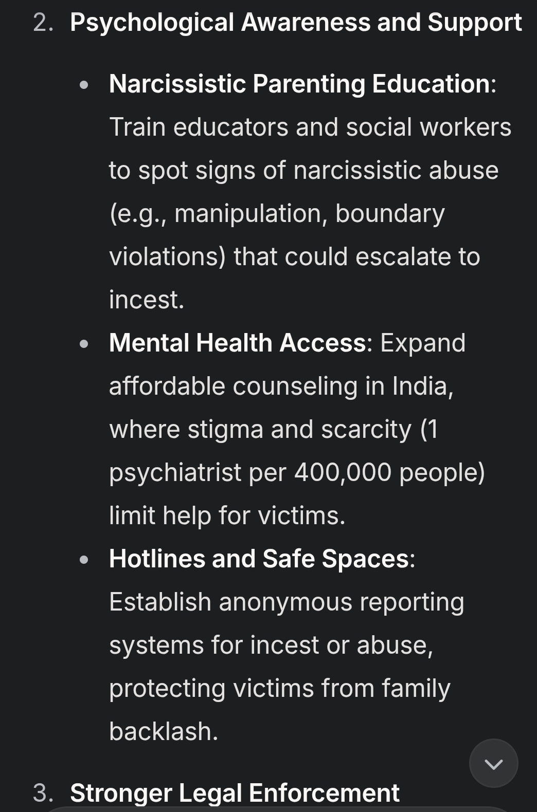 – **Narcissistic Parenting Education**: Train educators and social workers to spot signs of narcissistic abuse (e.g., manipulation, boundary violations) that could escalate to incest.