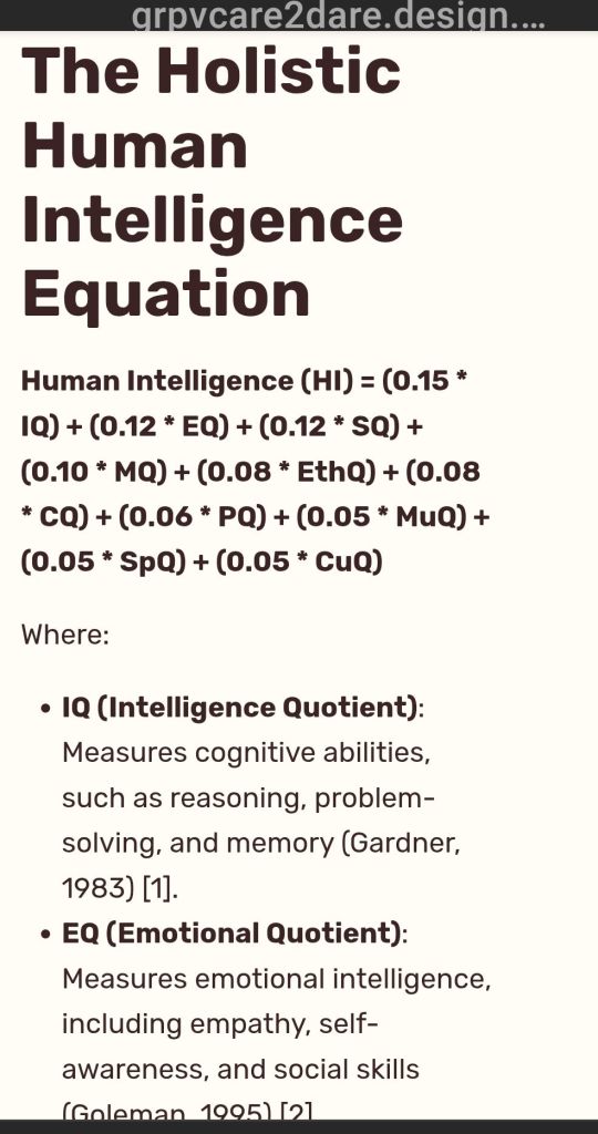 The Holistic Human Intelligence Equation