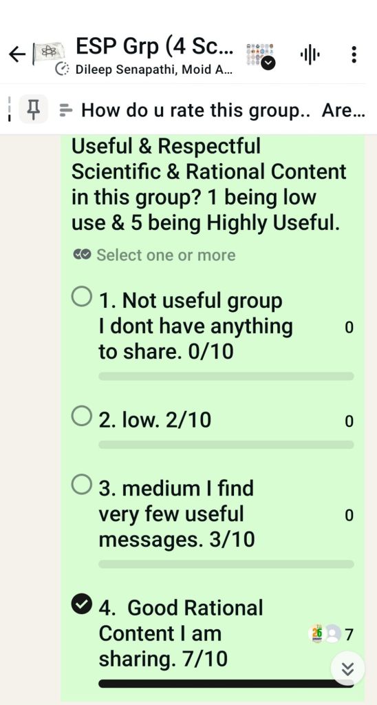 This Pinned Poll was Deciding Factor.. Max Voted Result.. do see Number of Forwards before and after this Poll. One can see Group Message Quality increases as Quantity Decreases.