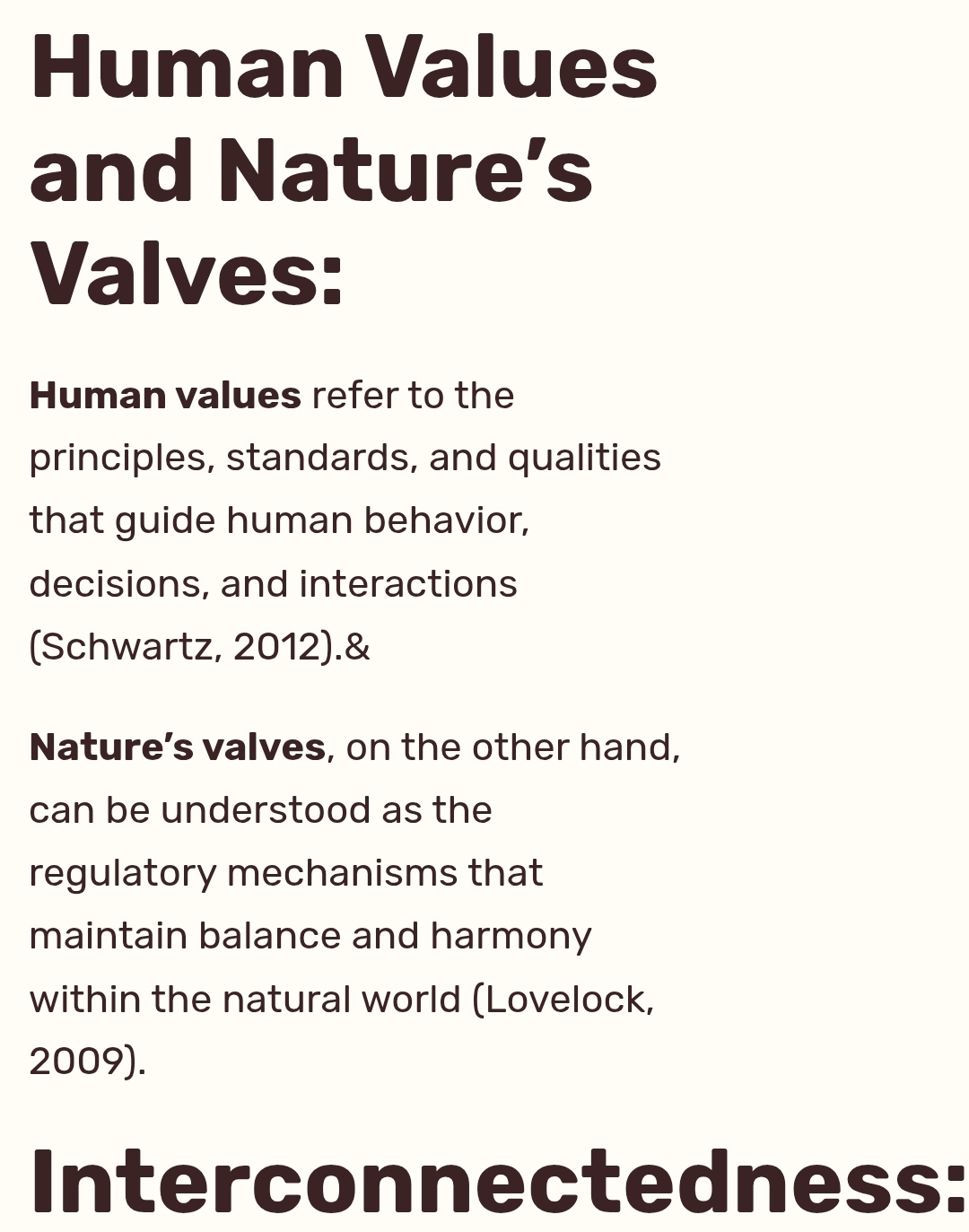The statement “Human Values & Nature’s Valves are linked” suggests a profound connection between human values and the natural world. This connection is supported by various scientific studies and theories.