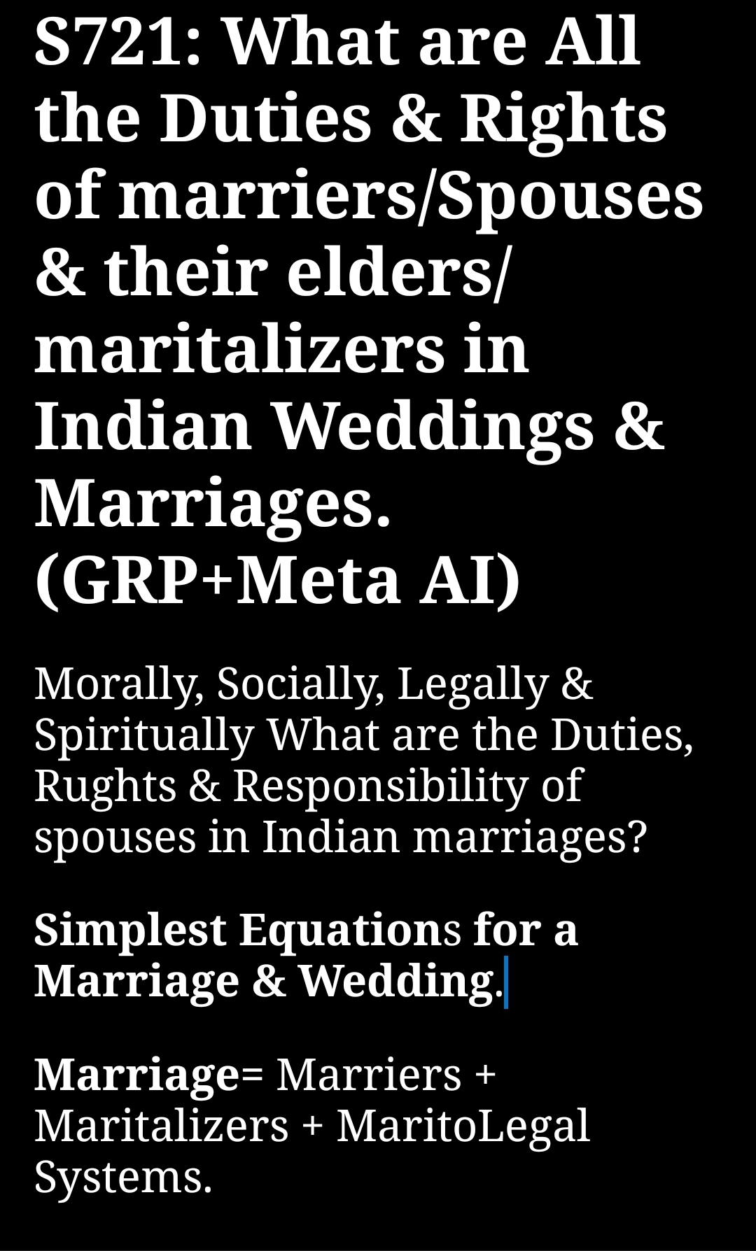 In Indian weddings and marriages, the duties and rights of spouses, elders, and maritalizers are governed by a combination of moral, legal, social, and spiritual principles. Here’s a comprehensive overview: