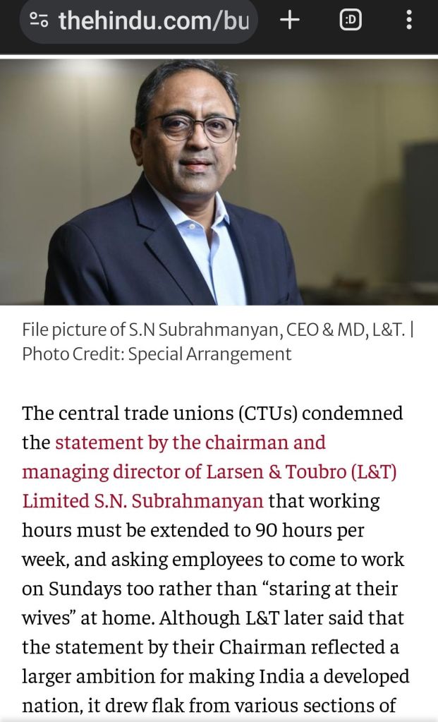 Irrationality Hurts Society.. https://www.thehindu.com/business/Industry/trade-unions-condemn-lt-ceos-statement-on-work-hours/article69089126.ece