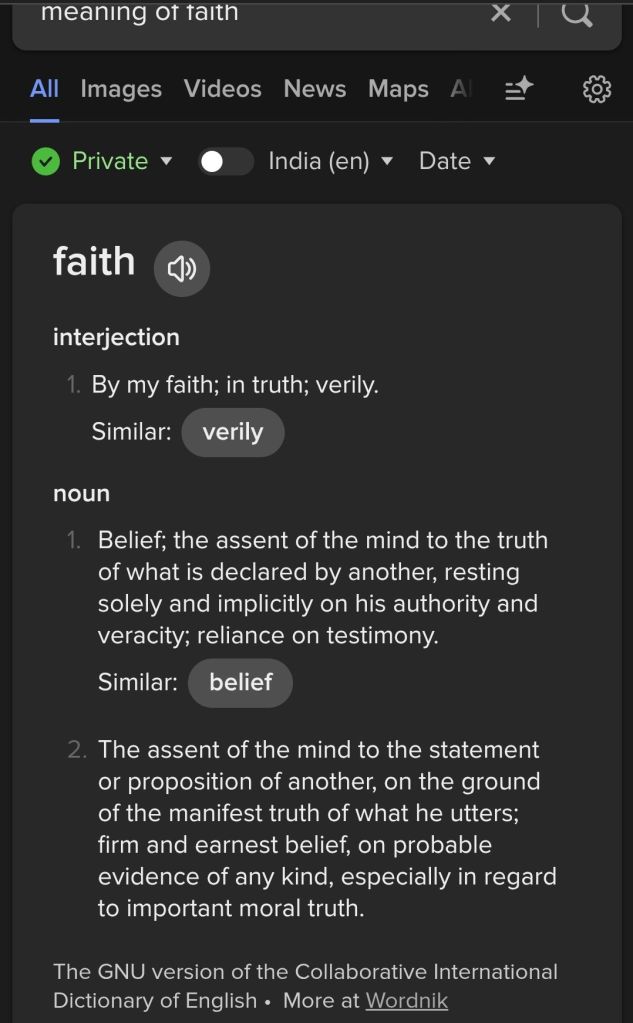 Aware_Faith is rooted from tested observations of something or Someone aware & in the light (Satvic Saul), based on verified & welltested interventions, with more truInformation, facts, truths & basis. Intelligent Belief Template: I believe in Something because I have analysed and realized the base verifiable facts of the thing or Somebody.