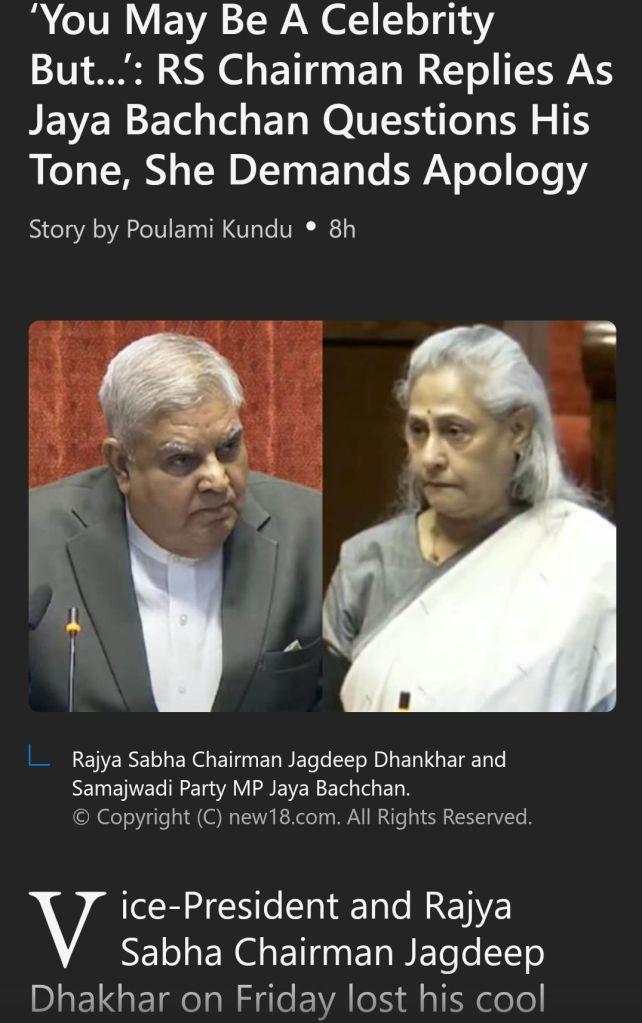 Read here: https://thefederal.com/category/news/jaya-bachchan-demands-apology-from-rs-chairman-dhankhar-over-tone-137978